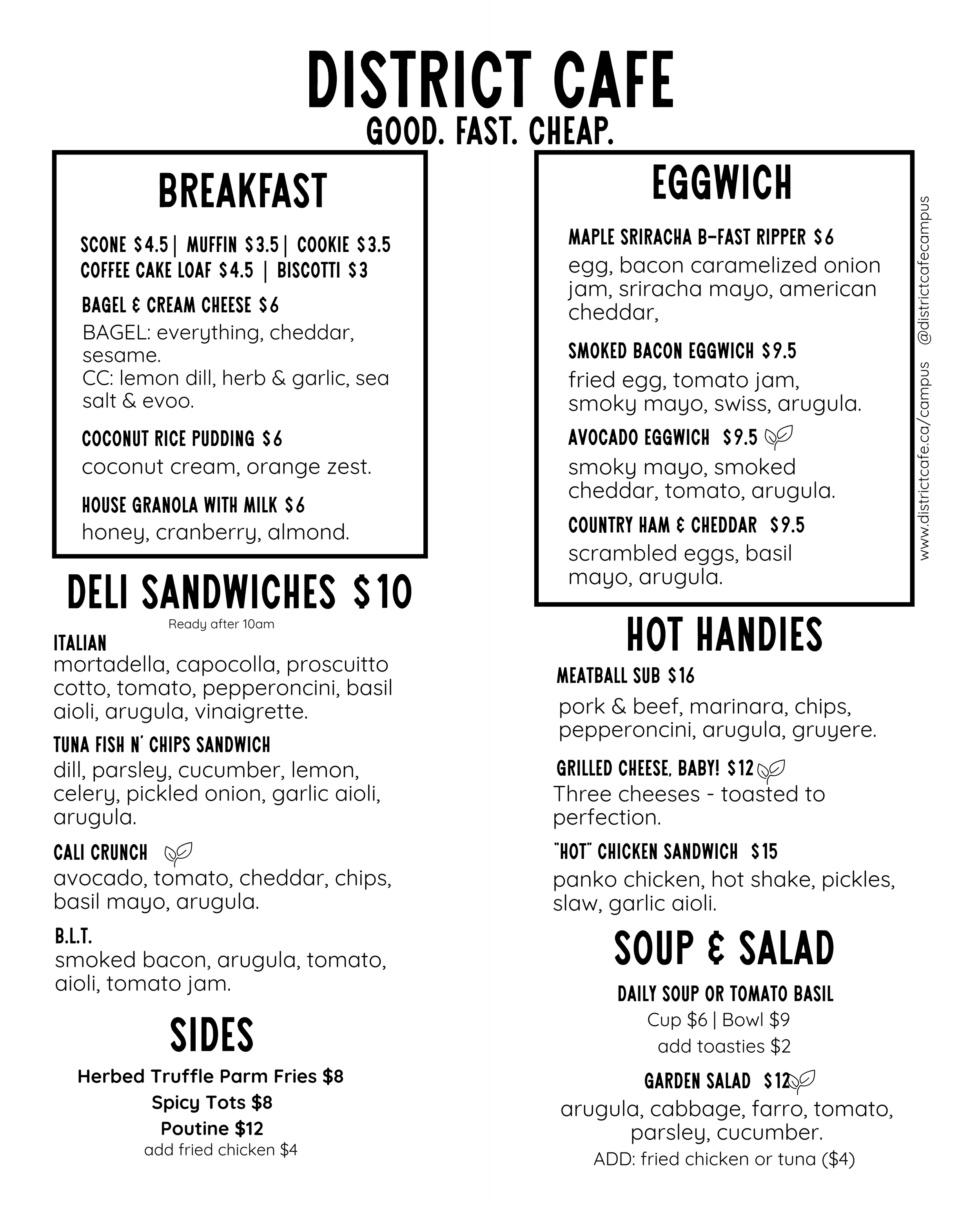Now Open! District Campus, the charming little sister of District Cafe Downtown, officially opened its doors in July 2025.